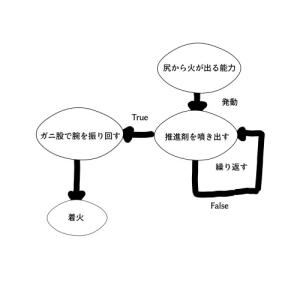 尻から水素と酸素の混合物を出す、尻から火を出すの2つがあって前者は常時発動可能、後者は発動条件(がに股で両手を振り回す)が必要ってことでしょ?