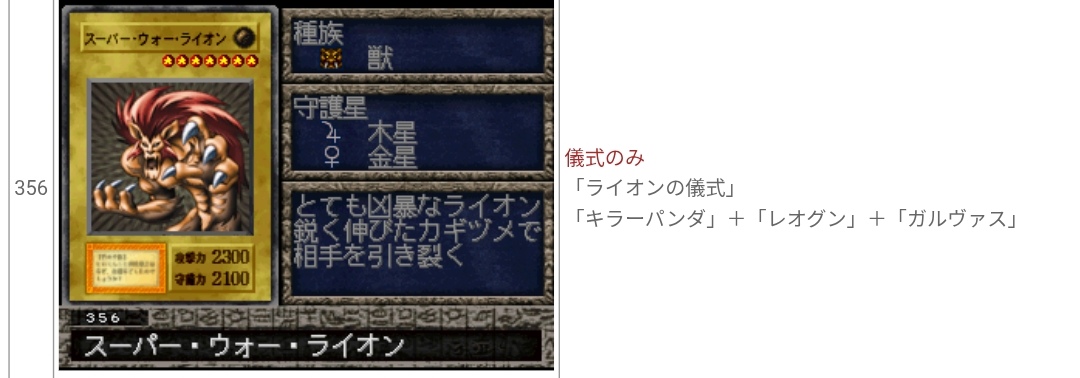 ライオンの儀式の上の方がカード化されたからその内ライオンの儀式の下の方も強化パーツとしてカード化されそう