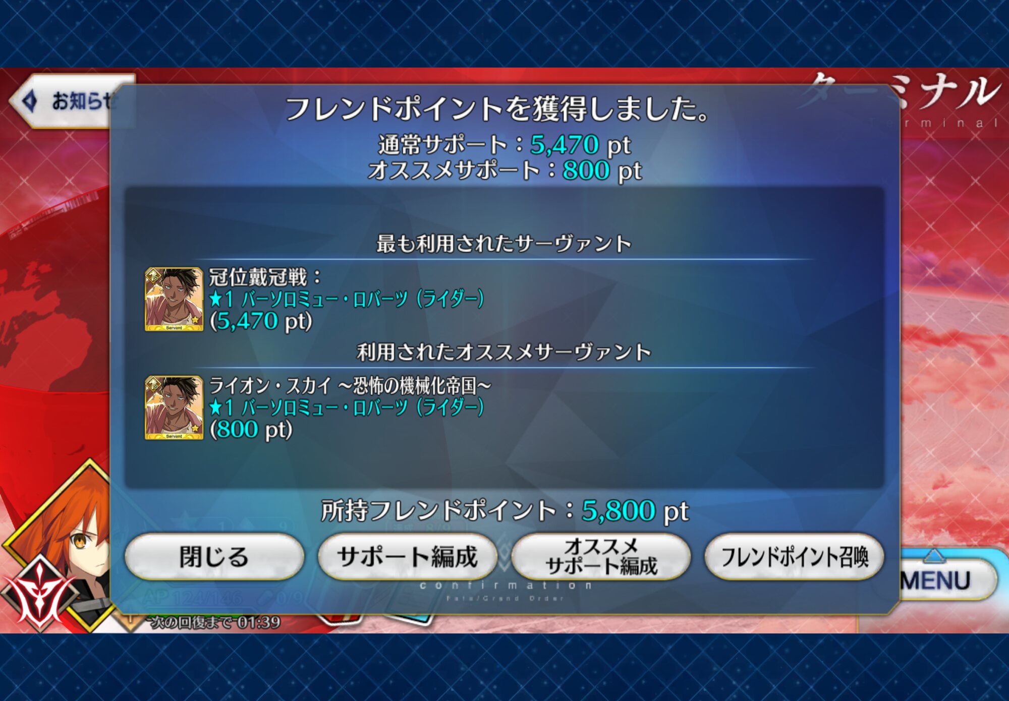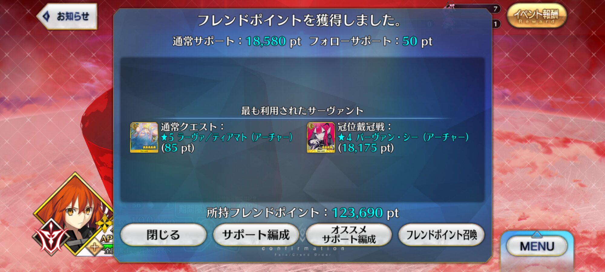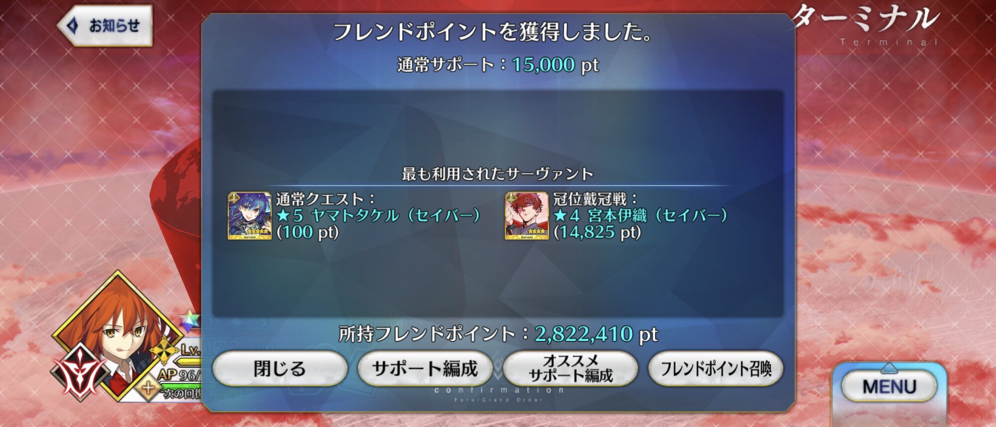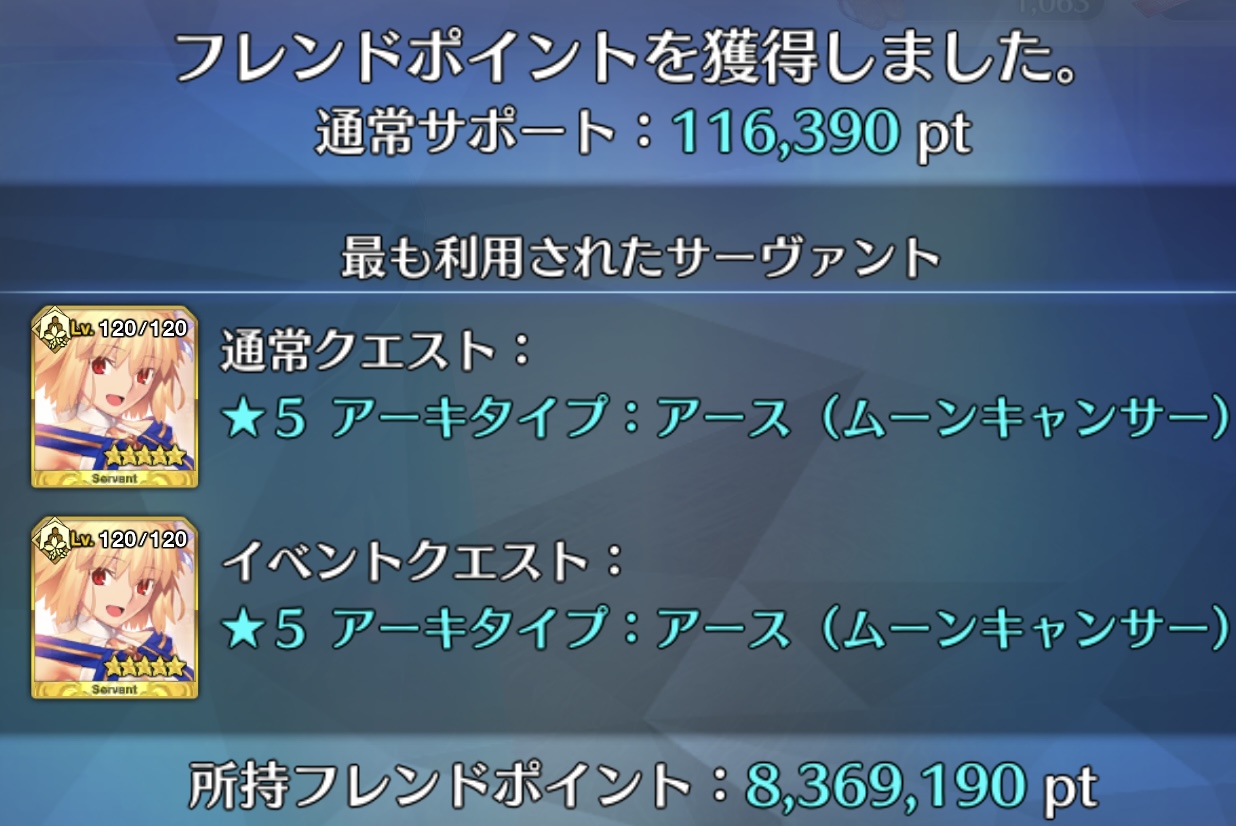 この時は聖杯鋳造実装されてすぐの時で皆低レアコイン目的の倍期間に屋敷跡でフレポ稼ぎしてたから通常6桁だと思う