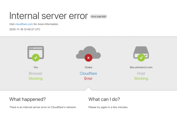 (このあたりはミレニアムの私に聞いた方が詳しいですが)あにまんのサーバー本体と私たちの間で良い感じに繋いでくれるサーバーが居て世界シェア1位なんですがドでかい障害を起こしてますね……。カイザーより全然すごいところですがこういうこともあります……。