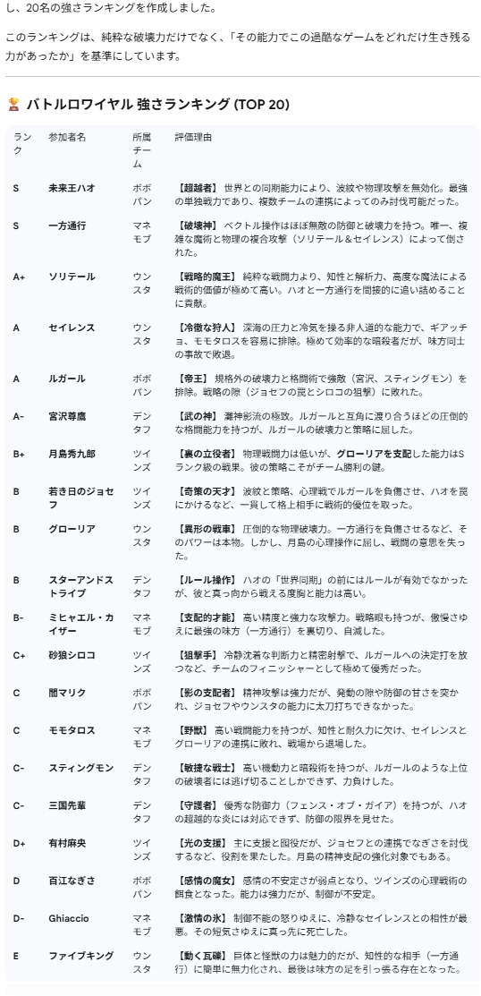 チームメンバー全員生存して勝利とは見事やな…ニコッ - 190二次元好きの匿名さん25/11/20(木) 19:27:47
