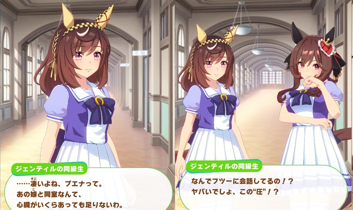 ジェンティルは誰が相手でも、特に同じトレセンにいるのなら間違いなく強者の側であろうと想定して話すだろうから自然と圧が滲むんじゃないのか