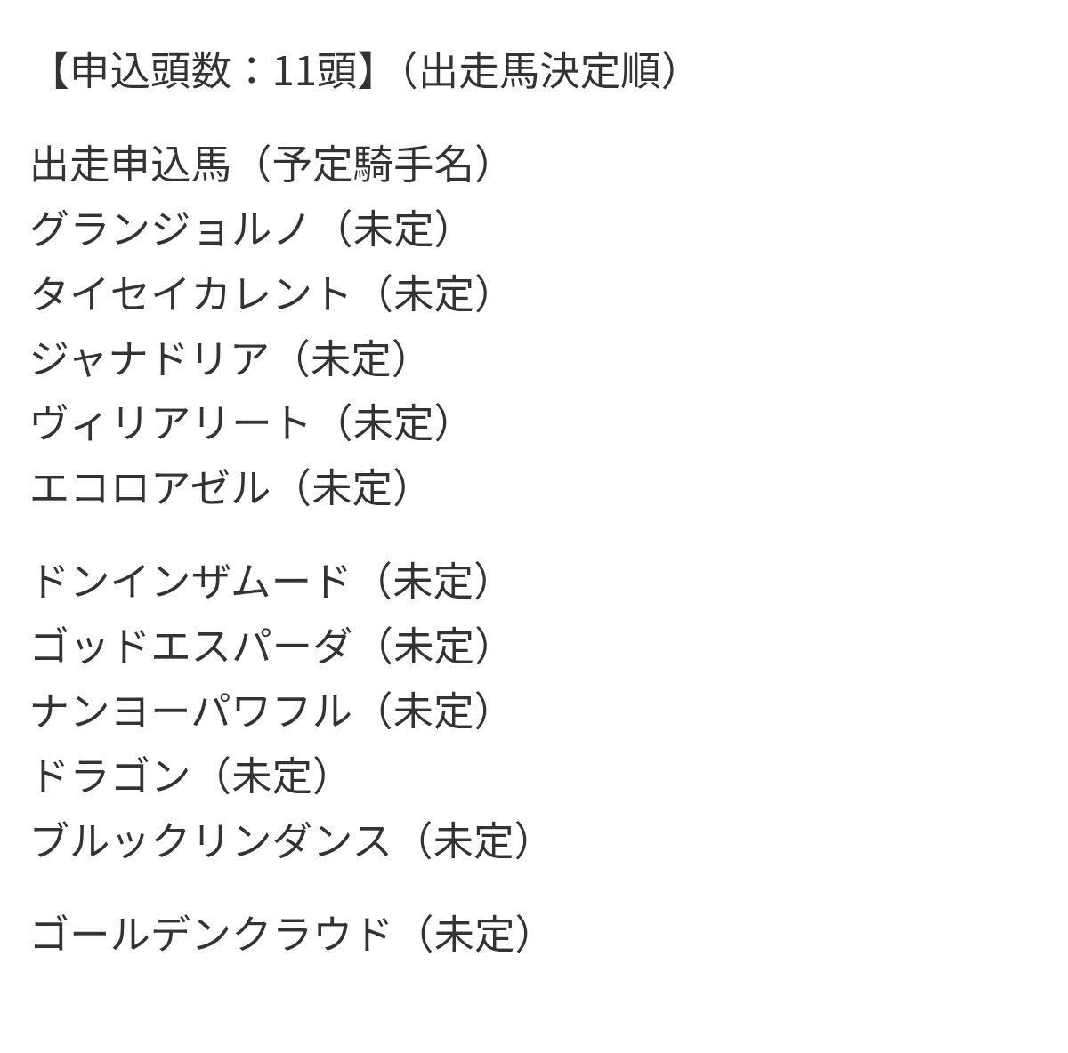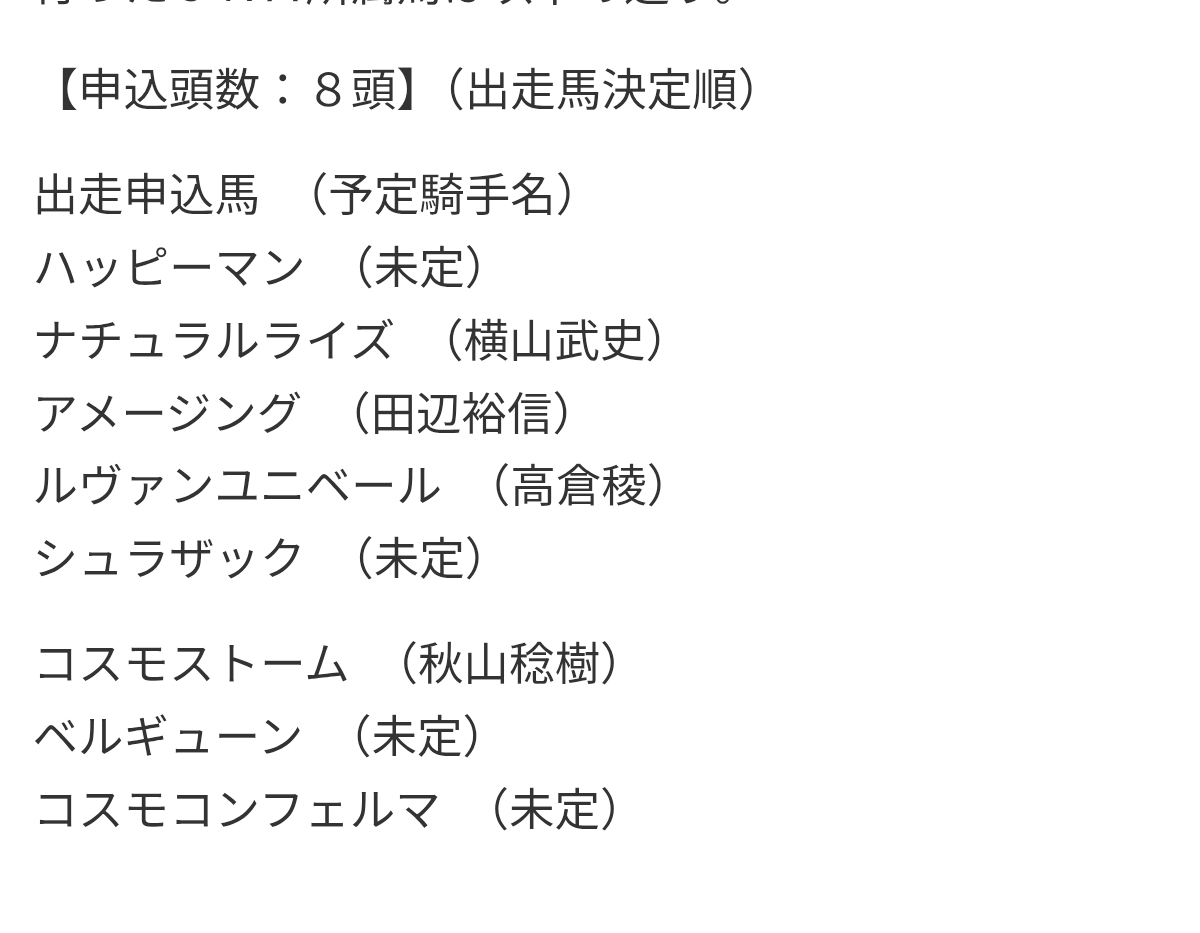 制度が知れ渡ってなかった去年が少なかっただけで今年はほぼフルゲートだぞ羽田盃