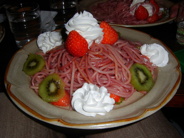 パスタ側に甘いものに合うよう改良を加えるなら美味しいのかもしれないね