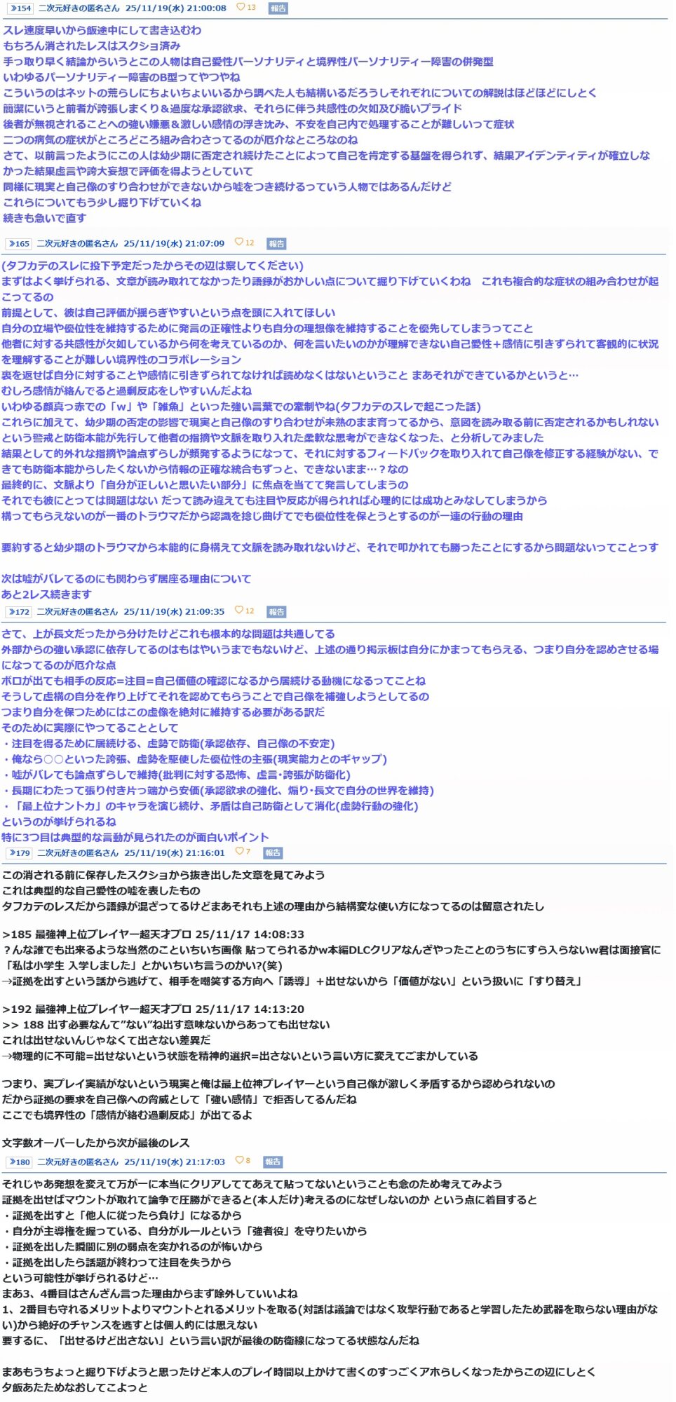 ELDEN RING NIGHTREIGNスレ DAY225|あにまん掲示板前スレ主さんの指示なので建てました荒らしには触れず、基本報告でお願いします。次スレは>>190が立てて下さい。前スレhttps://bbs.animanch.com/board/58948…bbs.animanch.comB群パーソナリティ症(旧:人格障害)について解説します | 早稲田メンタルクリニック今日は「B群のパーソナリティ症」を紹介します。 パーソナリティ症は昔で言う「人格障害」という疾患です。「人格障wasedamental.com - 2二次元好きの匿名さん25/11/22(土) 19:18:09