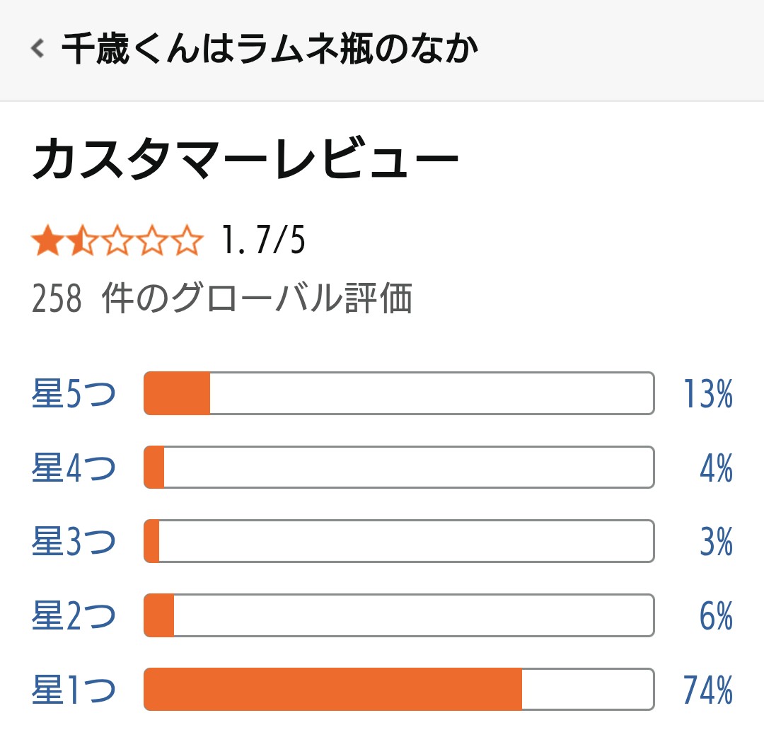 1.8から更に下がっててまだ下がる評価があったのかと驚愕してるのは俺なんだよね