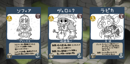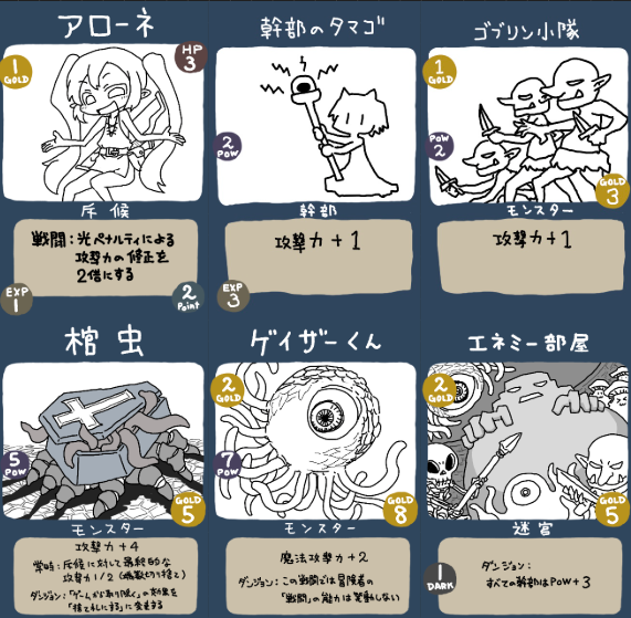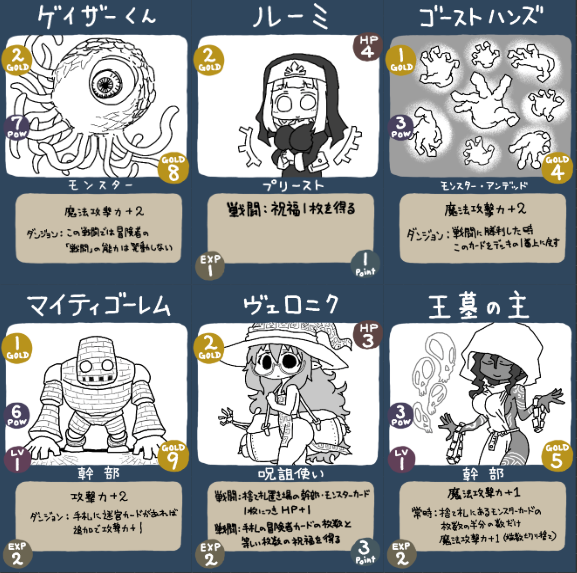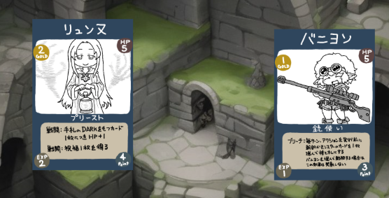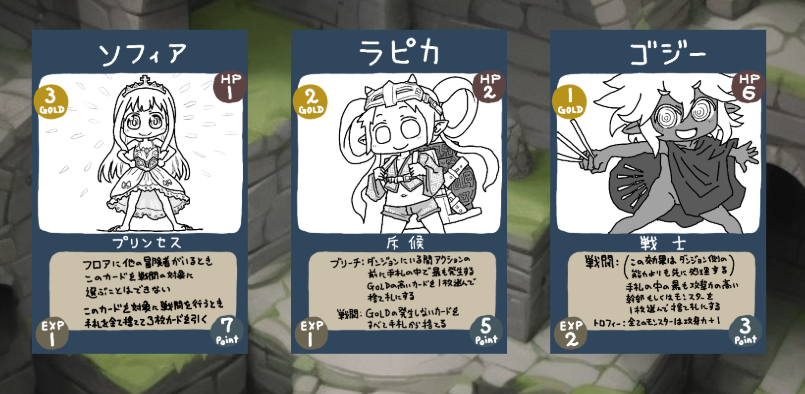 毎ターン、冒険者の山札から新しいカードが現れて上層に降りてきます。