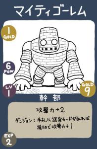 ⓪【ダンジョン前:ゴジー】攻撃力の最も高いカードを一枚選んで捨てる→【マイティゴーレム】捨て札