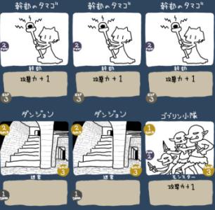 ダンジョンは、「冒険者の山札」と「上層・中層・最深層の三段階のカード置き場」で構成されます。