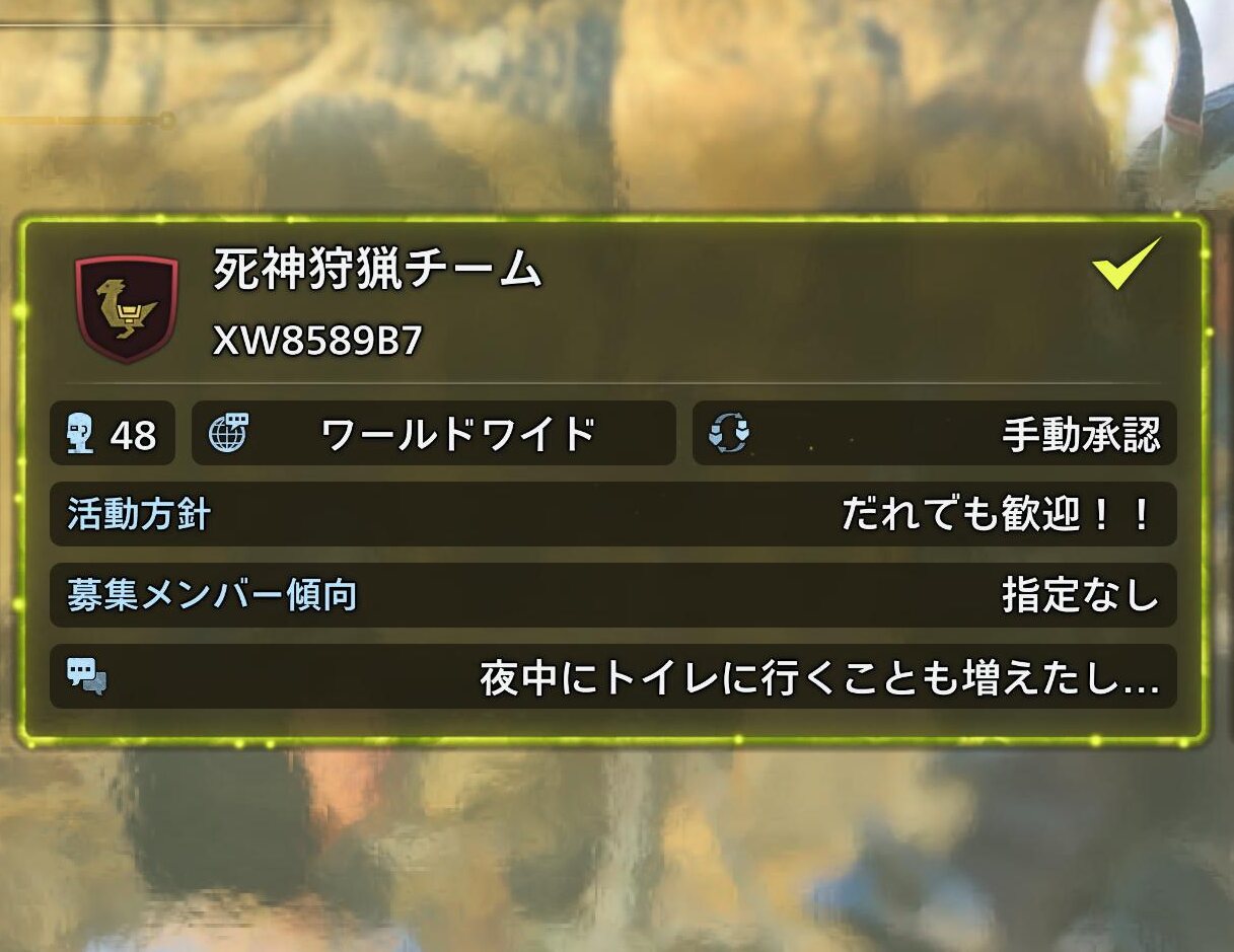 あっ死神狩猟チーム2枠空いたから…申請すれば明日の夜には承認できるでやんス