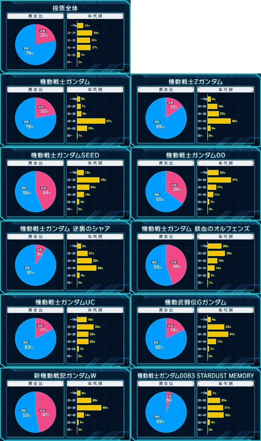 シンプルにこういう人気投票みたいな奴だと最推し選ぶから0083に表が入りづらいとかいう奴じゃないかな他にも好きな作品と比較した場合推しに全ツッパしたいし