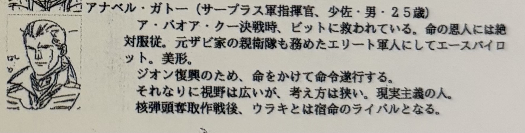 「90年代ロボット作品のほぼファン層男性100%の人気男キャラ」のサンプルとしてはガトーは歴史資料としては興味深いと思う