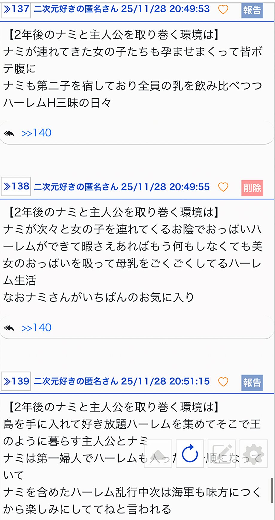 ナミも第二子を宿しており全員の乳を飲み比べつつハーレムH三昧の日々 - 138二次元好きの匿名さん25/11/28(金) 20:49:55