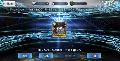 星5礼装2引きはあったけど鯖は出てないなー