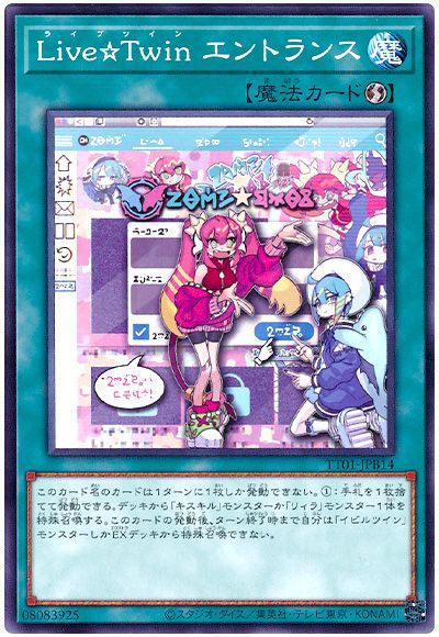 ①このカードが手札・墓地に存在する場合、自分の手札・フィールド(表側)の「ライブツイン」カードまたは「イビルツイン」カード1枚を墓地に送って発動できる。このカードを特殊召喚する。この効果で特殊召喚したこのカードは、フィールドを離れる場合に除外される。
