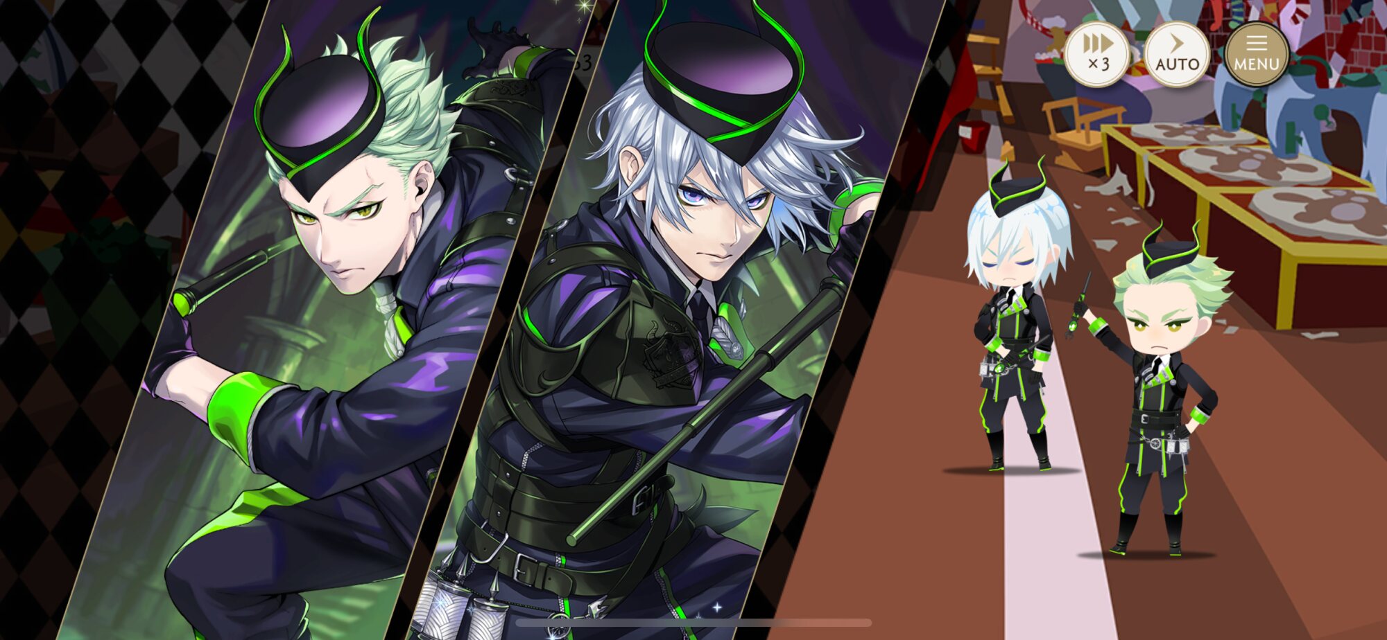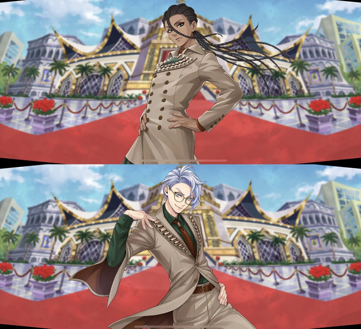 寮服はエーデュース、ラギーとジャック、リーチ兄弟、シュラウド兄弟、兄弟弟子とグルーヴィー前が対になってるデザイン多くてこれ系はどうしてもDUOしたときの画を優先してグルーヴィー前にしちゃうんだよね