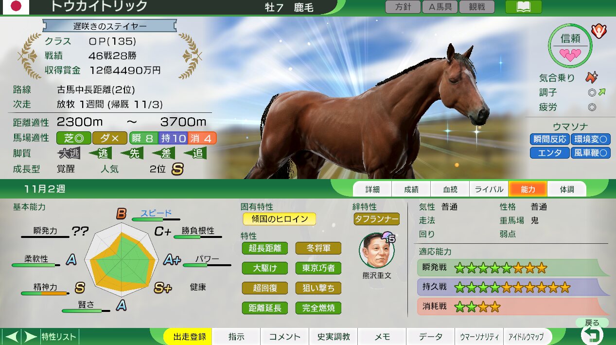 あと史実馬もだけどサードステージみたいなスーパーホースでも他にようなこと起こるんだよな