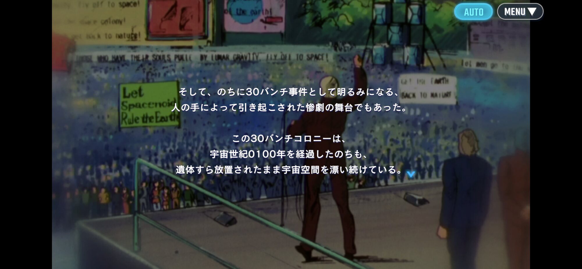 「変革者たち」っていう一年戦争からマフティー動乱までの流れをざっくり解説してくれるイベント。ただ恐らくハサウェイ(マフティー)視点で歴史を振り返る形式だからナレーションの思想は大分偏ってる印象。