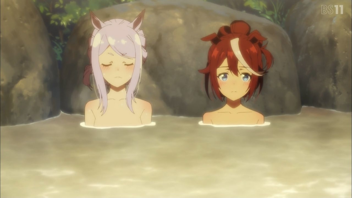 砂浜を海水に脚を漬けながら歩くリハビリ(海水で冷やしながら波を脚に当てるのと水を含んで柔らかい砂を踏む事でマッサージ効果がある)するのが目的だったそうだけど、これをテイオーとイクノが一緒にやったかどうかは不明