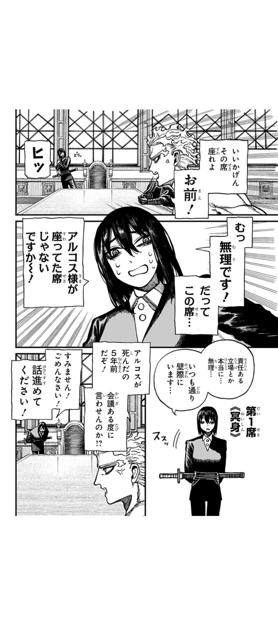 アルコスを倒した敵に「勝てるかも」と言われただけでブチ切れた拗らせ四席から見て、アルコスのものだった第一席に座る資格があるほどの実力者ってことだから、やっぱり冥身ちゃん相当強いんだろうな