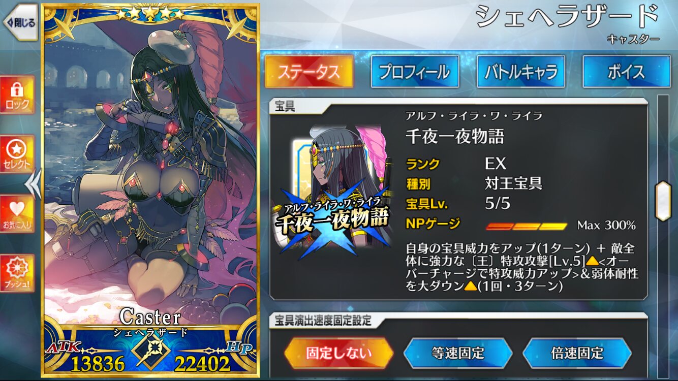 当方の冠位予定がきゅけおーん(宝具5)だったんだけど、仮に儀典ソロモンに王属性あったら単体であってもうちのシェヘラザード(宝具2)の方が火力出るんだよね?
