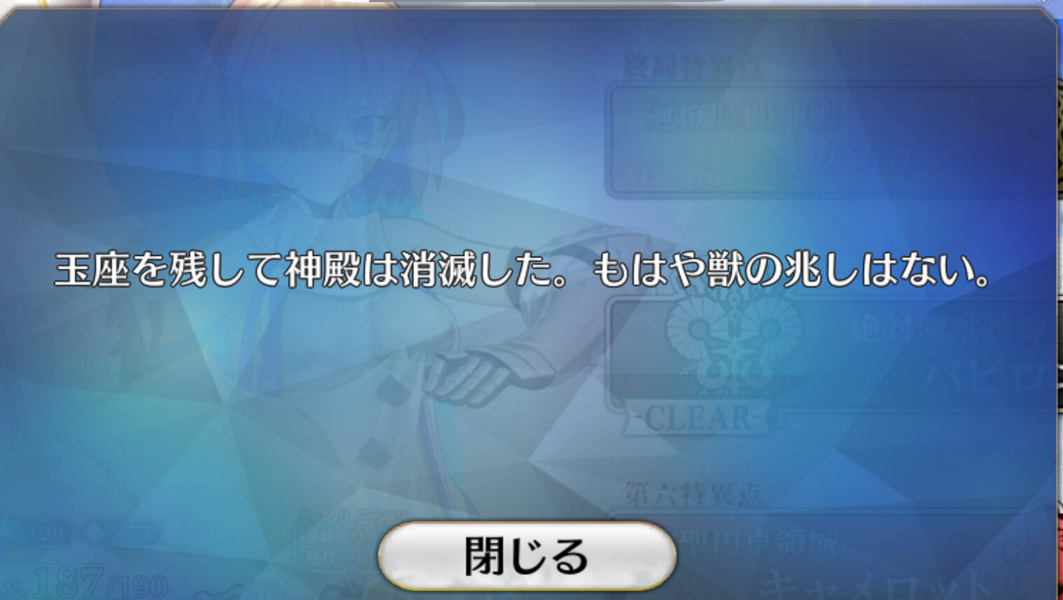 多分序章の言動的にこいつ抑止力側というか「人理の危機だからなんとかしろし」って派遣されてるから解決したら退去させられちゃうんでない