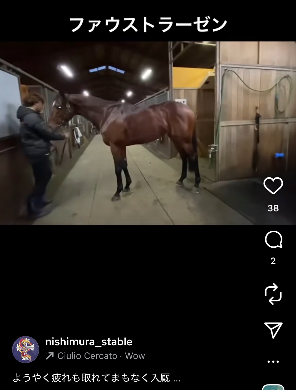 ネトケの掲示板で11/20に「厩舎インスタによると入厩した」と書いてる人がいるんだが該当の投稿が見つからない上にJRA公式やネトケの表示も放牧のままなんだよな