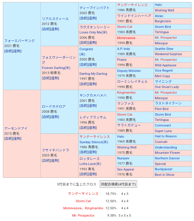 エースインパクトみたいな欧州で、ノーザンダンサーの本数が多いのが強いとかアメリカ馬のミスプロの本数が多いのが強いみたいな単純だけど大種牡馬の影響力を実感する