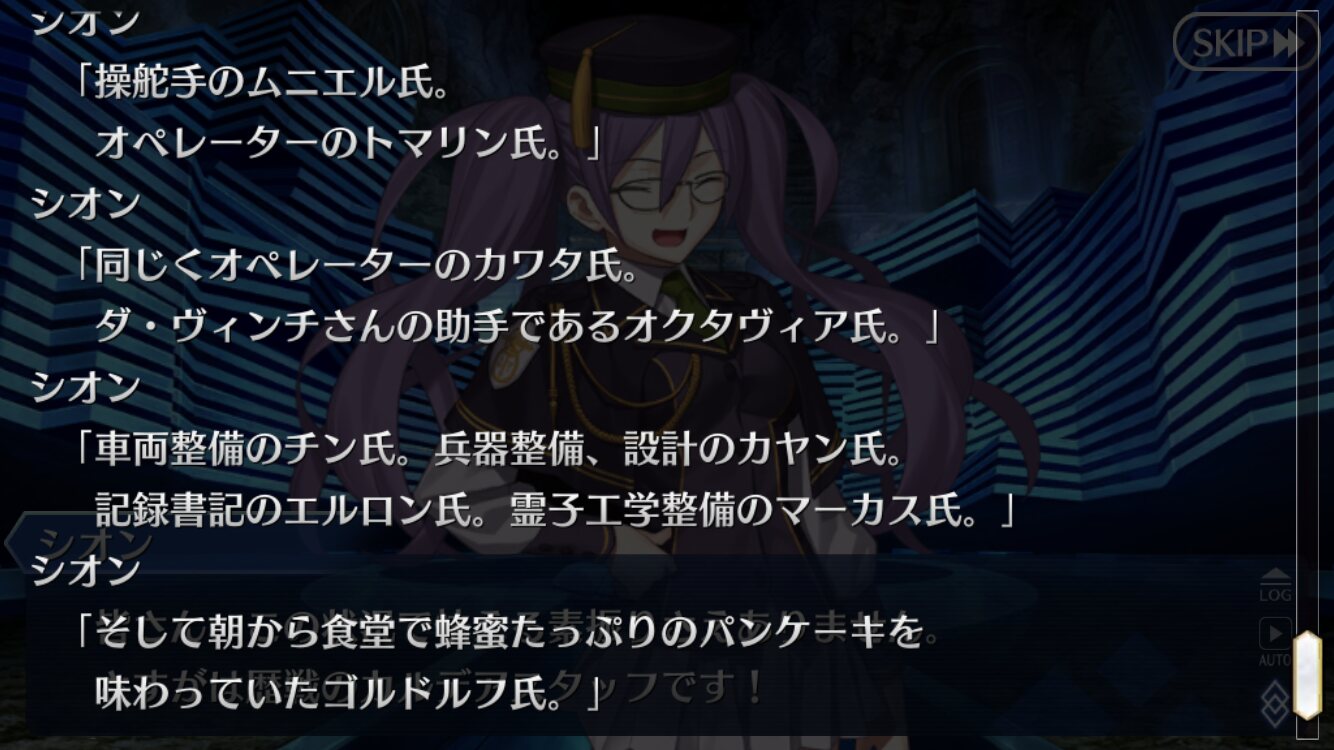 車両整備のチ.ンさんとかダ・ヴィンチ助手のオクタヴィアさんとかめちゃくちゃ気になるんだけどな