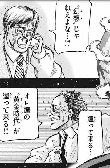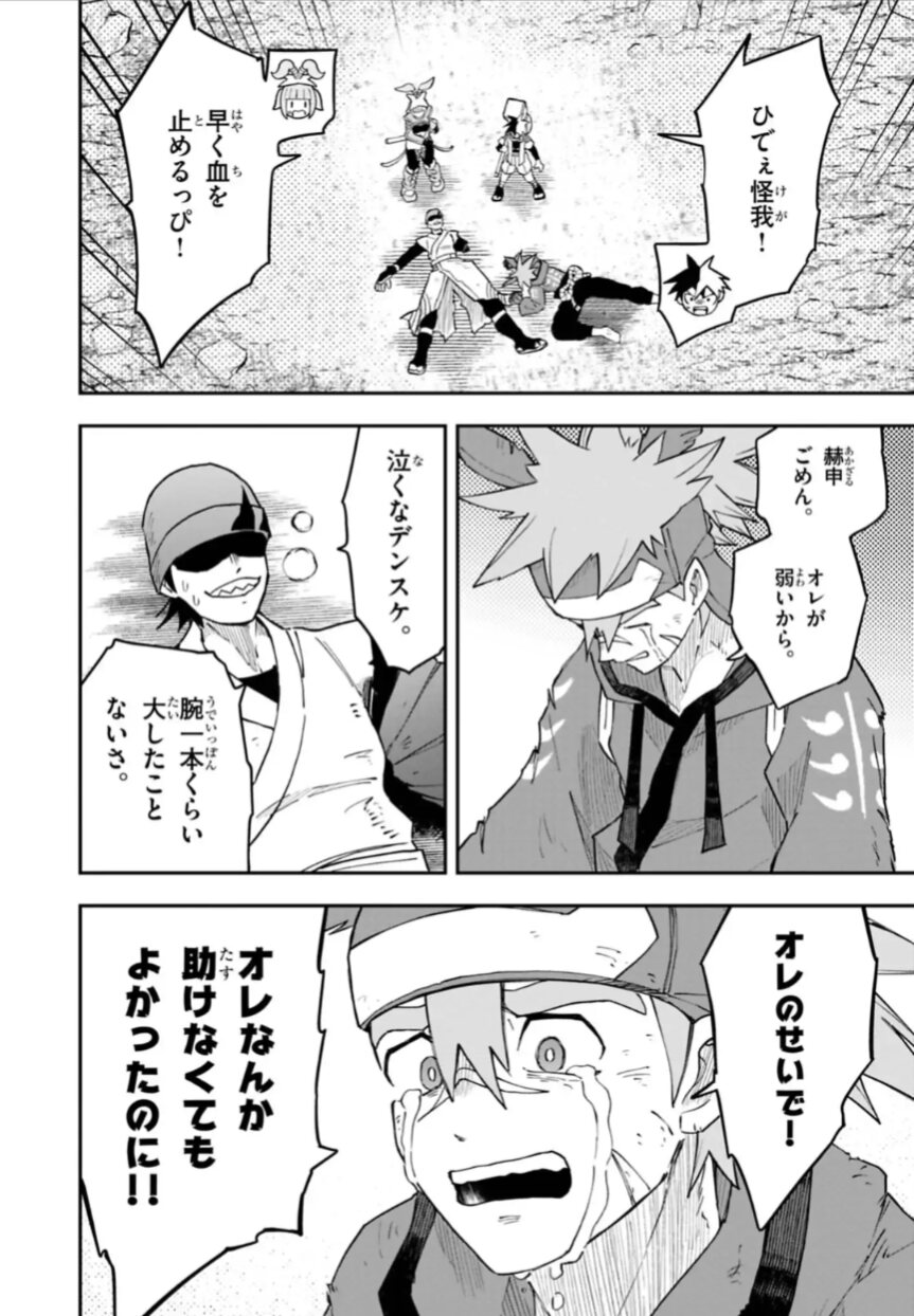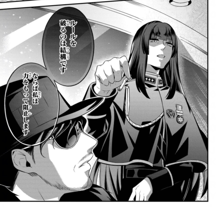 右が左を「人を捨てて得た力…だったか?無意味だったな」と嘲笑している場面