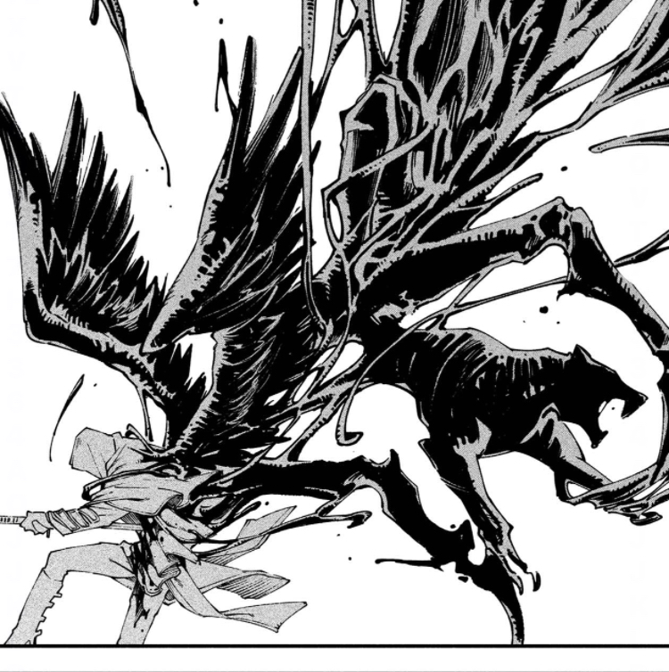 切腹を条件に怪物を召喚する能力者が能力を発動するシーン