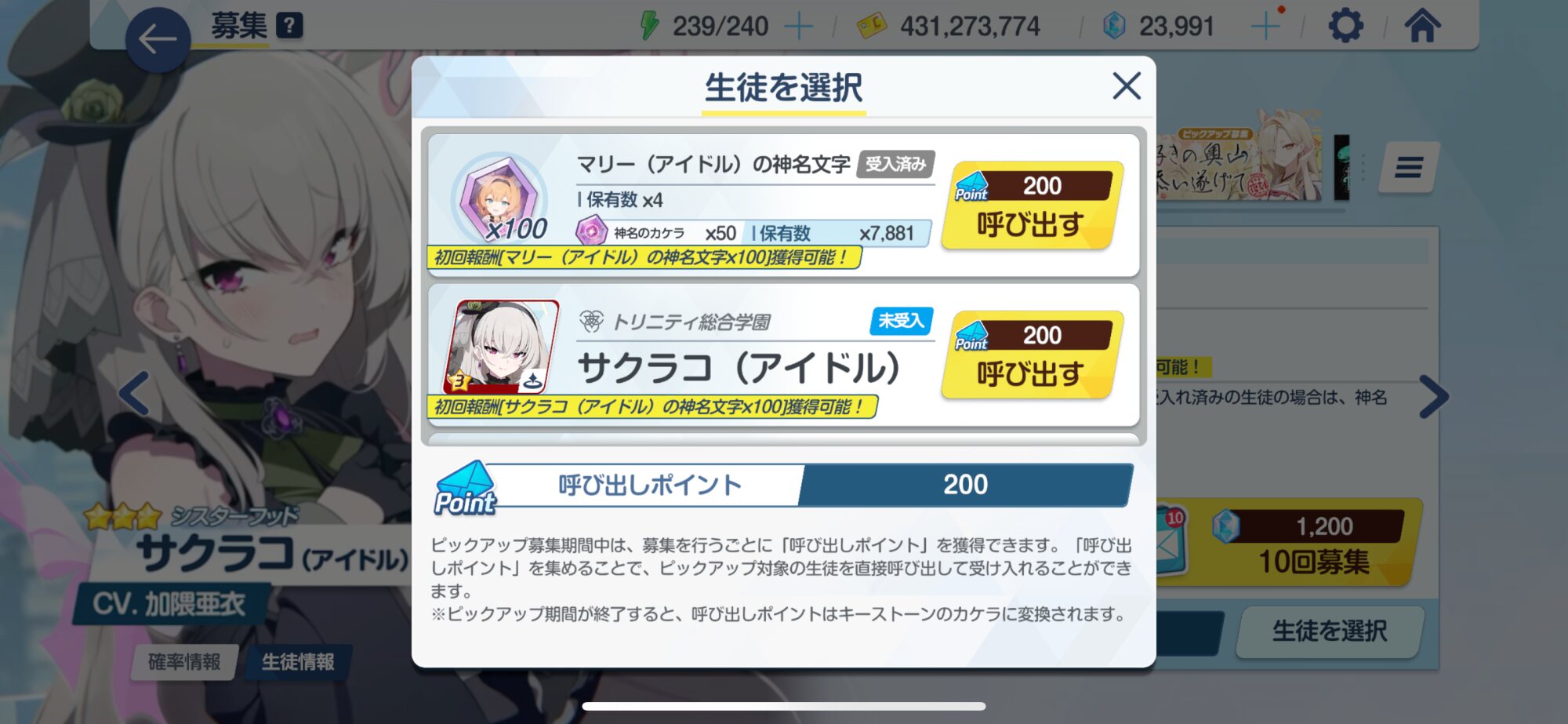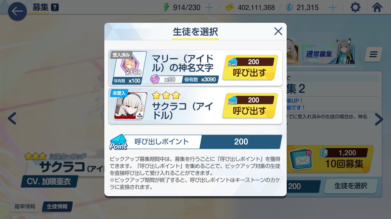 今凄い迷ってるんだけどさ、120連してマリー2枚抜きしたんだけどサクラコ様も好きなんですよ