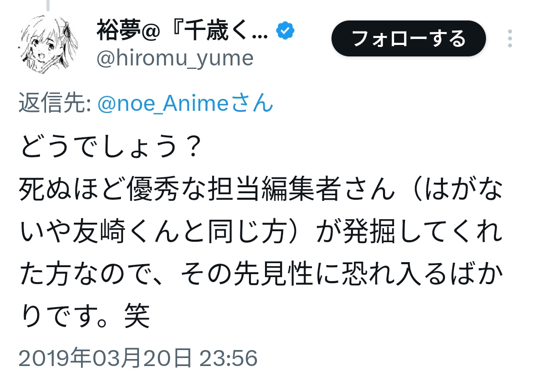 マケイン作者のX見てきたらこの人チラムネ全巻読んでて毎回感想呟いてる…