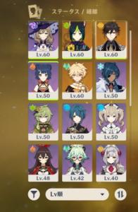 天賦も上げてるんだけどどの素材もすっからかんだから各キャラクーの一番優先度高いやつだけ上げてる