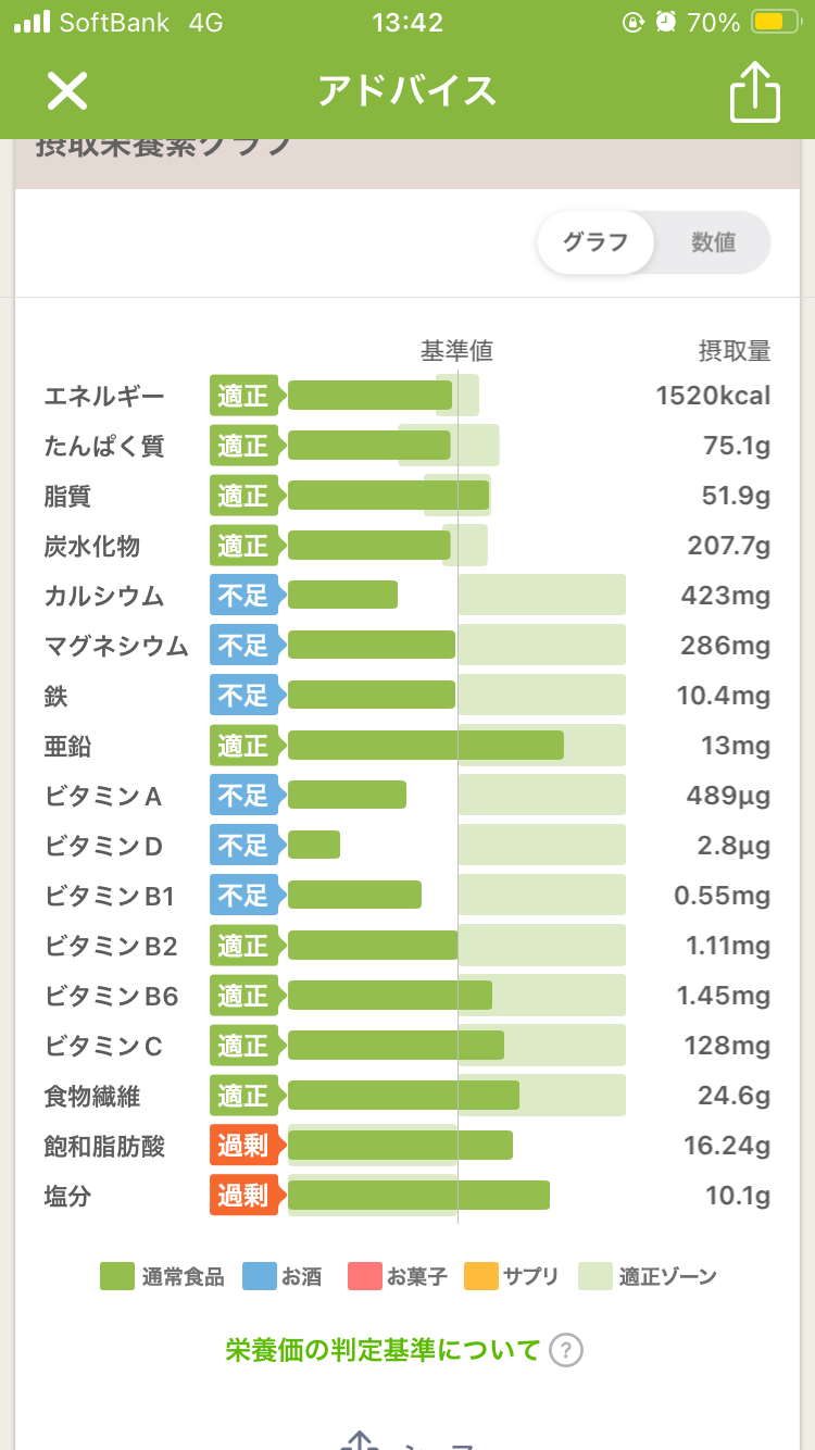 あすけんは食ったものを記録するんじゃなくて、最初にメニューを打ち込んだらどこが多いどこが足りないとか教えてくれるからそれ見て食べるもの調整するのが良いってばっちゃが言ってた