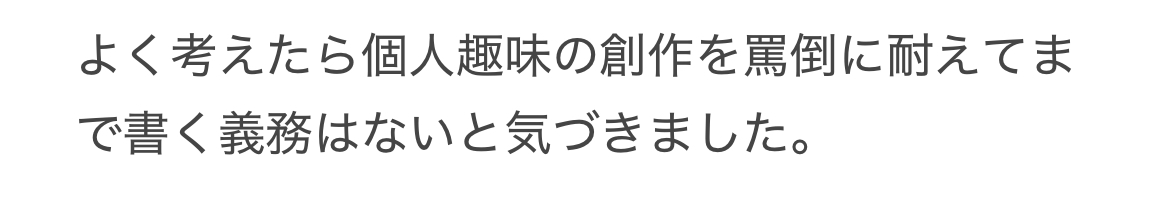 商業漫画や小説も罵倒に耐えてまで書く必要ないわよね