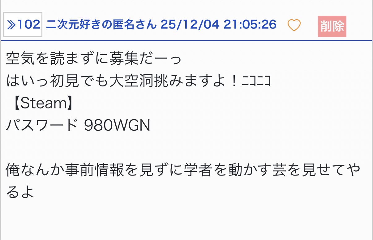 大空洞の攻略はもう少し情報が出揃ってからにします - 14二次元好きの匿名さん25/12/04(木) 16:14:14