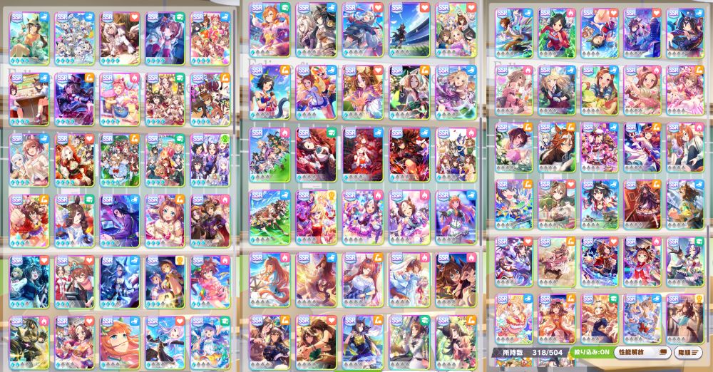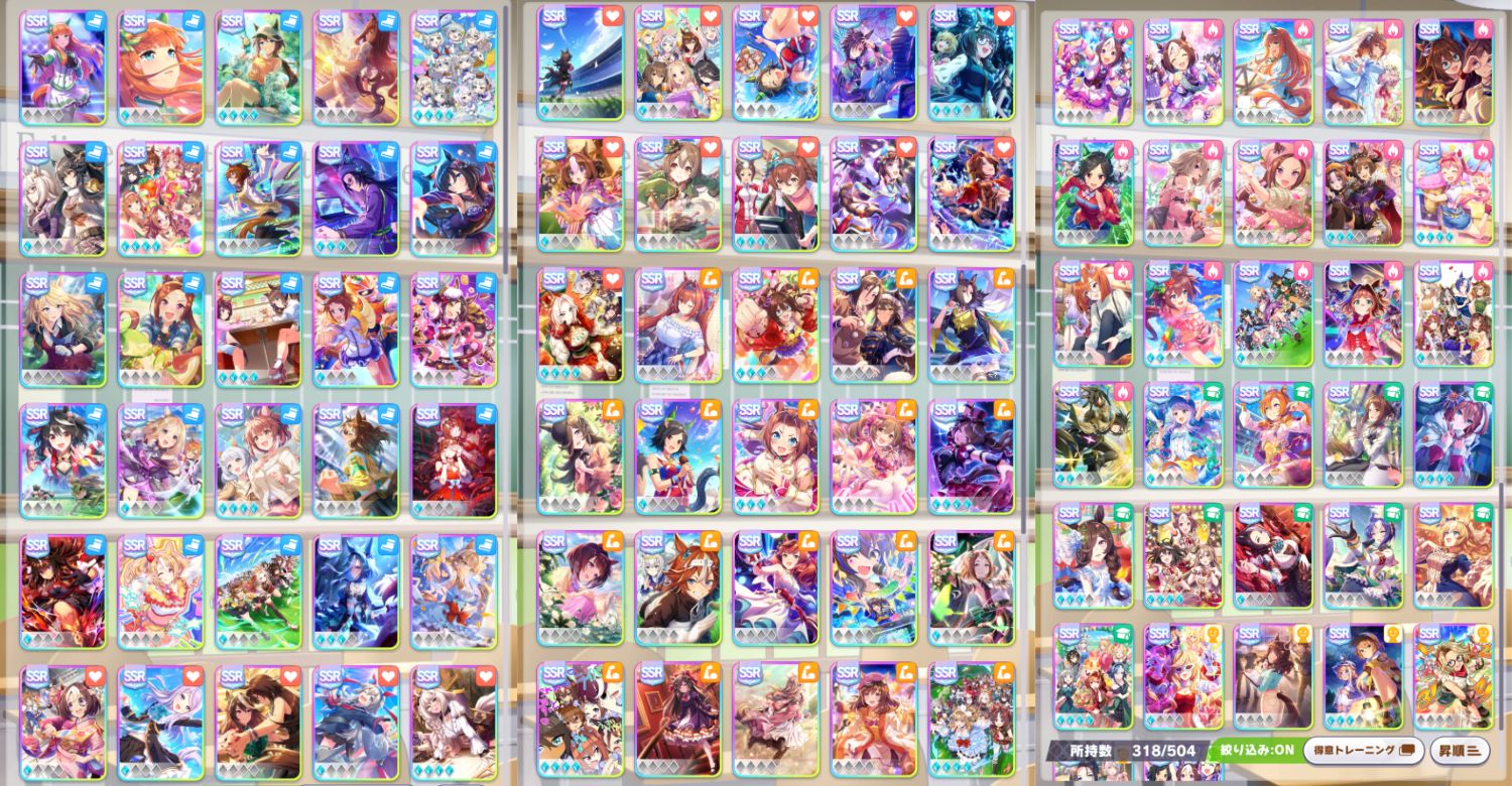 並べ方が汚いけどとりあえずまともな完凸がテイオーのみで他のスピサポがなきに等しいのを見るに