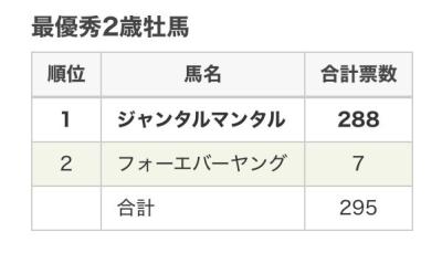 投票者が約250人としてそのうちの約100人が年度代表馬、ダートホース、4歳牡馬全部に入れる前提でいいようなもんだからな