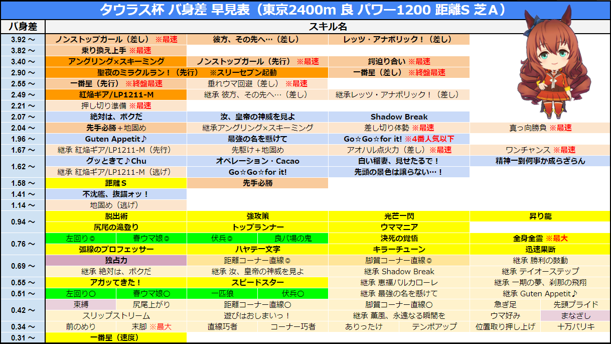 そうでちゅねー、絵(え)で見(み)たとおもいまちゅけど、tire表……タウラスおすすめキャラとかがいいんじゃないでちゅかねー?