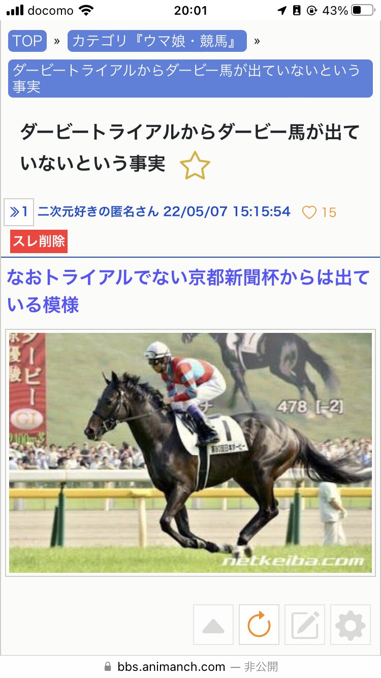 だから関東馬の多い東京競馬場開催の青葉賞があんまり…という - 44二次元好きの匿名さん22/05/07(土) 18:09:08