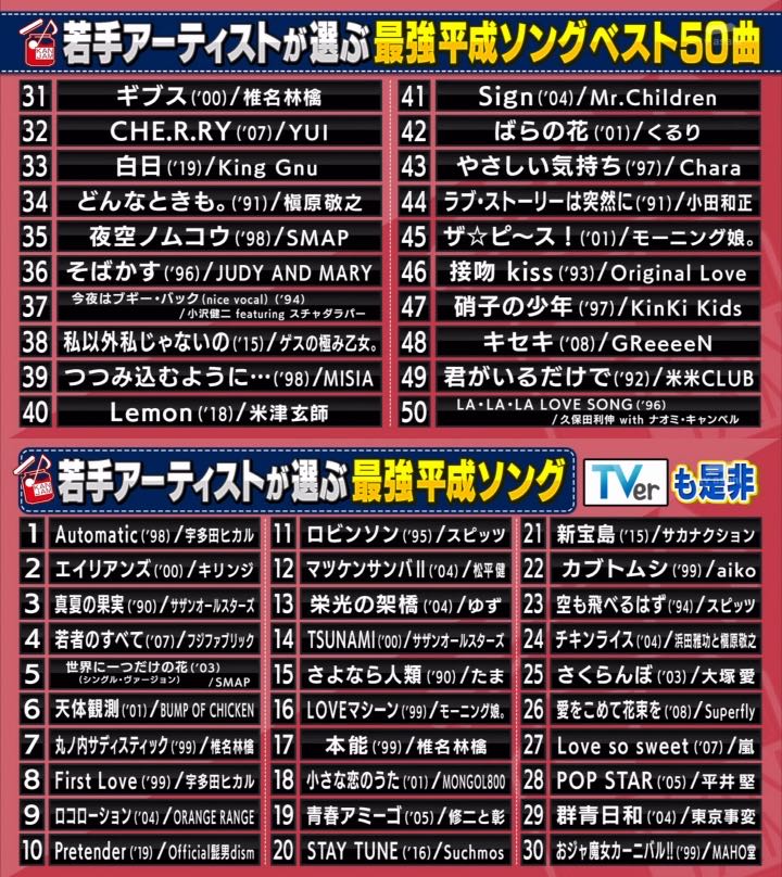 青春アミーゴもランクインするのか…こう言ったら何だけどアーティスト受けしないと思ってた
