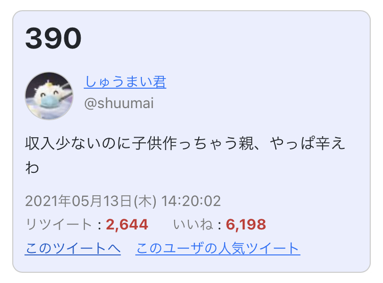 今の時代だと猶更子育てが辛いからな・・・1人かよくて2人ぐらいまでだろう