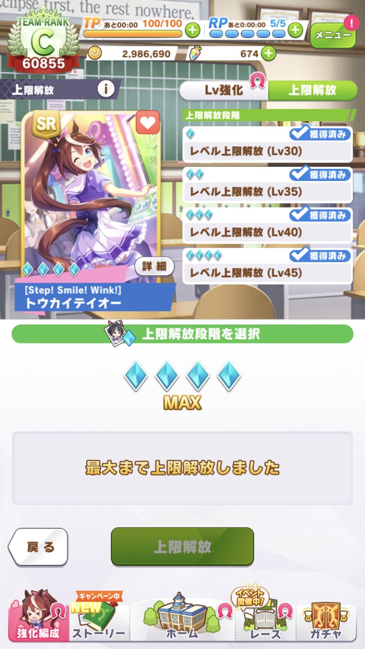 2凸まではいった。やる気ボーナスは…まあええやろ