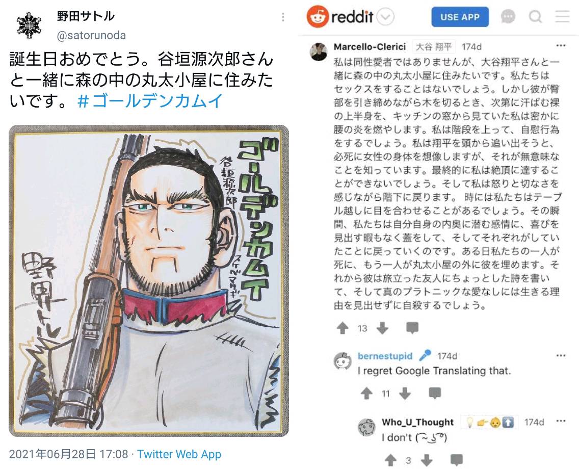 ホモをネタなら許すがガチはキモいとか言ってる時点でゴールデンカムイ向いてなくね?