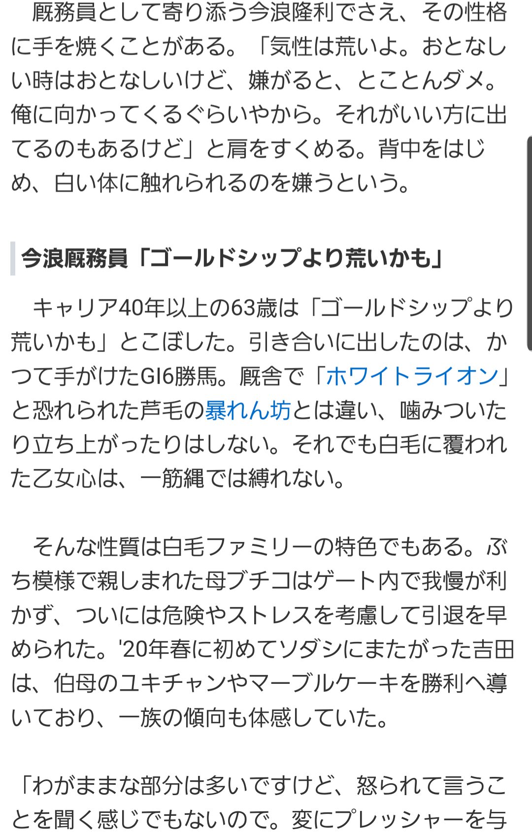 レース前は調教拒否とかやりたい放題だけど、レース始まりさえすれば普通に走ってくれる真逆のスイープの方がスレタイ通りなのでは…