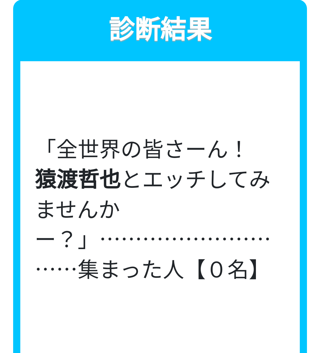 「全世界の皆さーん! 日下部覚吾とエッチしてみませんかー?」…………………………集まった人【3名】