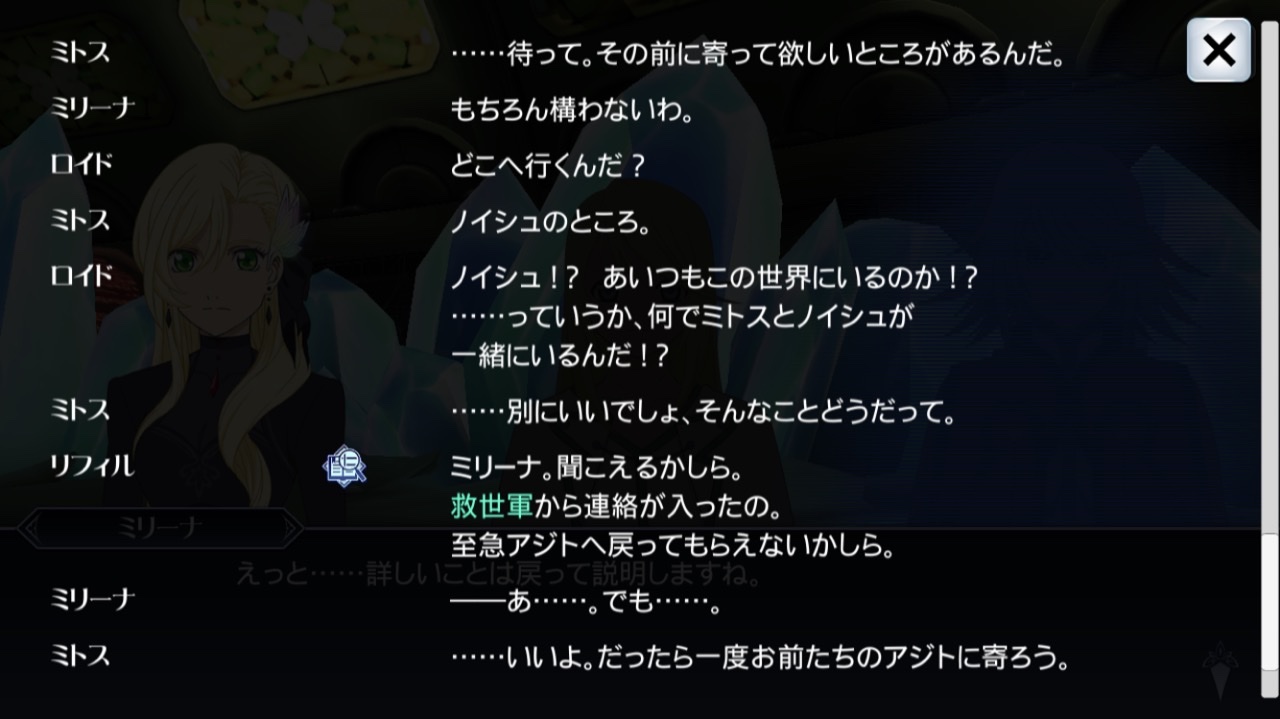 主人公イクスとヒロインのミリーナが会話