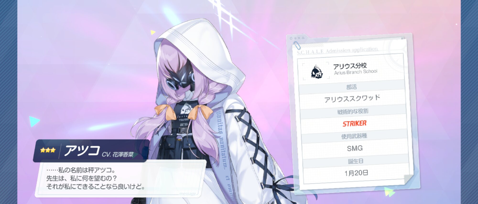 ヒヨリさんはアリウス分校、アリウススクワッド所属の小心者で物憂げな印象を与える生徒さん。