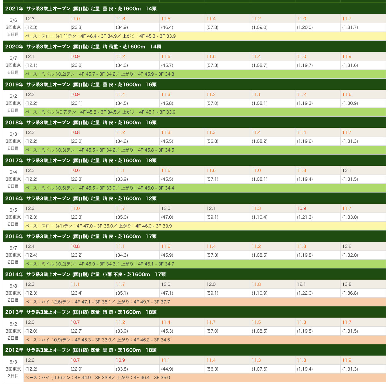 その後に3Fの末脚勝負になるか、4〜5Fのロングスパートになるかは年によって変わるもん、これは正直出走馬を見て判断するしかなさそうだもん